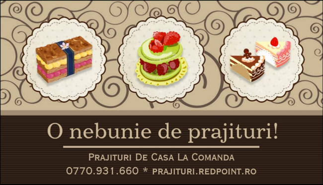 Alege prajiturile si cantitatile dorite, apoi comanda telefonic la 0770.931.660 (intre 9.00 si 19.00),